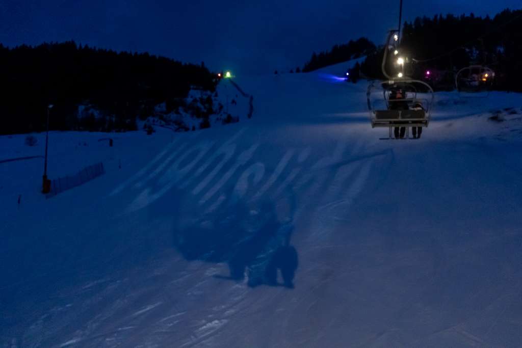 Die erste Abfahrt war für unsere Verhältnisse noch ein wenig zögerlich, denn nachts zu rodeln ist stellenweise fast ein bisschen wie Blindflug. Aber schon die zweite Abfahrt fühlte sich wieder gewohnt rasant an. Insgesamt sind wir viermal gefahren. Ein großes Dankeschön geht an unsere Fußwärmepads.